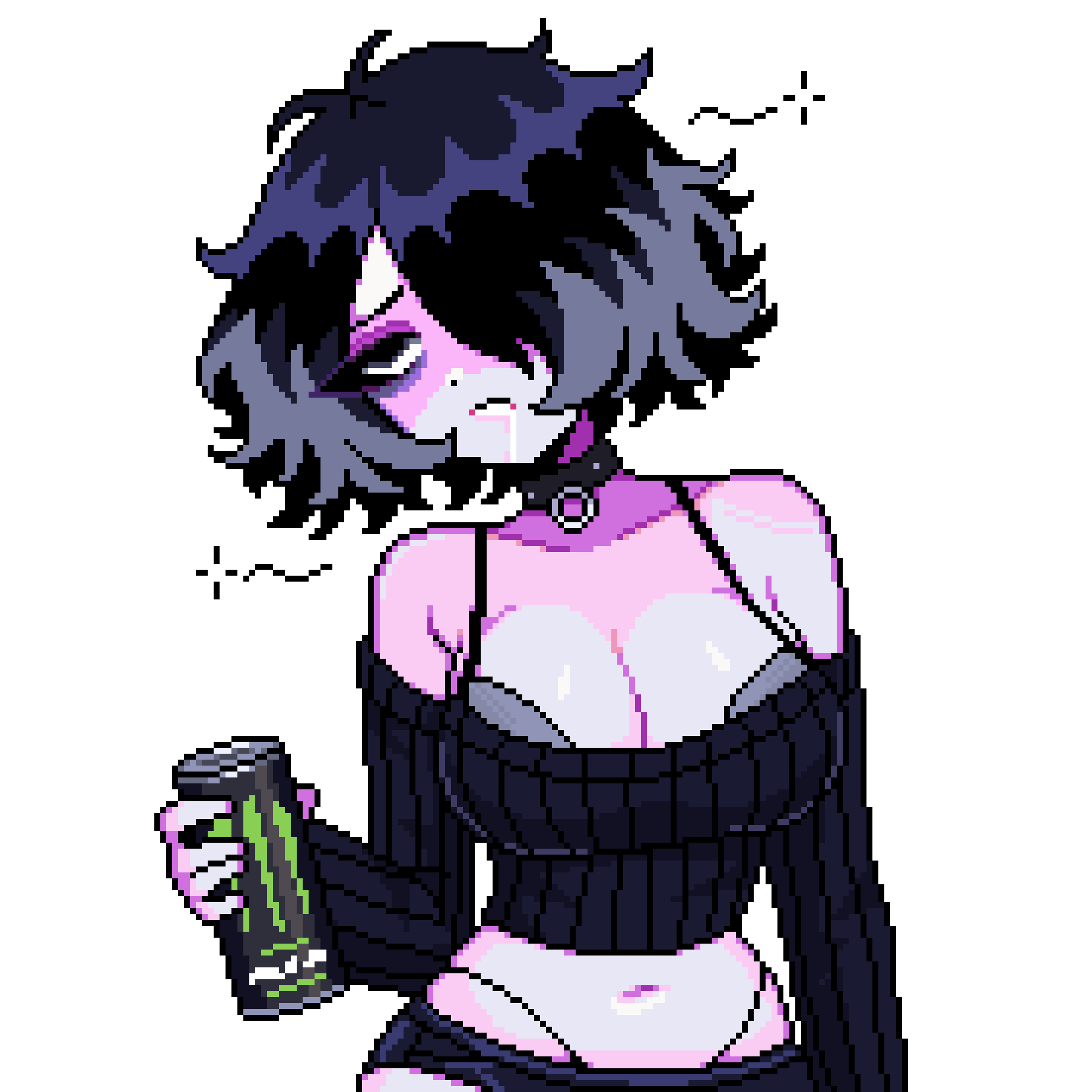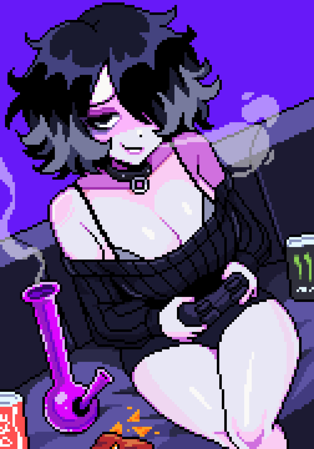 ▶ addicted to energy drinks▶ rarely brushes her hair properly▶ goes through creative hyperfocus phases▶ makes bad-taste jokes▶ addicted to sex (or gooning)▶ gets nosebleeds when aroused▶ keeps screenshots and memes like relics