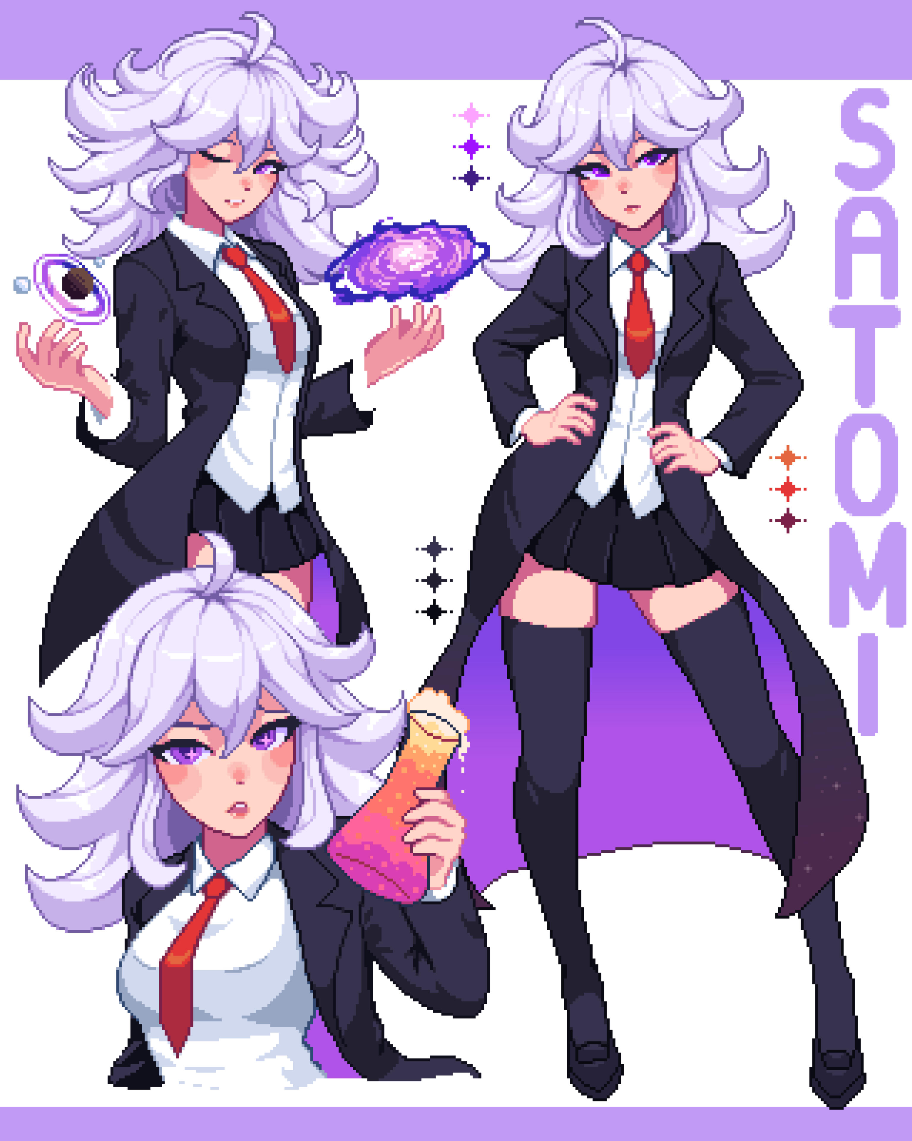 Satomi is extremely intelligent — at an almost absurd level. She could do things that seem impossible, but what truly matters to her is not power… it is understanding the universe. Existence, space, and the idea of infinity are still mysteries even she does not consider fully solved, and that is what motivates her.In many adventures with her friends, Satomi shows what she is truly capable of. She has revealed things like the multiverse and handled situations that go far beyond normal.Many people think Satomi is cold or distant, but that is not true. She laughs, makes jokes, and shows feelings — just without exaggeration. She remains calm even in chaotic situations and rarely loses control. What sets her apart is her serenity.Satomi believes everything can be solved with intelligence — even love and friendship. She knows how to show affection and get involved, but she often seems distant because she is very focused on work and has little time. To her friends, she is someone reliable — the first person to turn to when something seems impossible. And they can always count on her, because her love for them is evident.